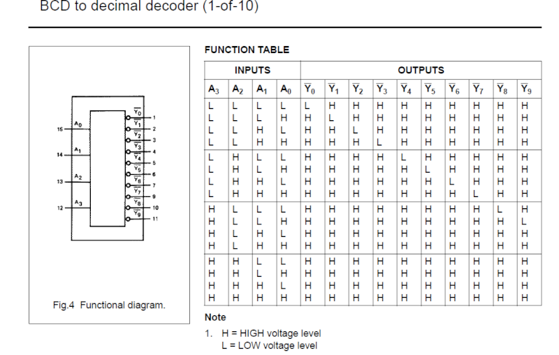 Bảng chân lí của 74LS42 (truth table)