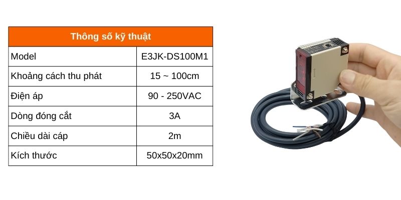 Cảm biến Quang DaWei E3JK - DS100M1 (90-250VAC) là thiết bị điện tử được sử dụng để phát hiện vật thể bằng tia hồng ngoại. Loại cảm biến này thuộc nhóm cảm biến quang điện phản xạ khuếch tán, hoạt động dựa trên nguyên tắc phát ra tia hồng ngoại và thu nhận tín hiệu phản xạ khi có vật thể đi qua vùng cảm biến.