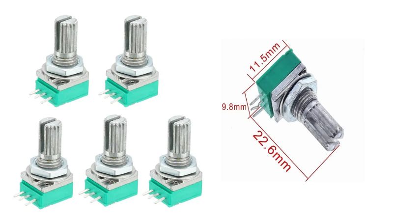 Chiết áp đơn RK097N là một linh kiện điện tử cơ bản, thường được sử dụng để điều chỉnh cường độ dòng điện hoặc điện áp trong các mạch điện. Nó có cấu tạo đơn giản, gồm một điện trở có giá trị thay đổi được khi xoay một trục. Giá trị điện trở này được thể hiện bằng các ký hiệu như 1K, 5K, 10K, 50K, 100K, tương ứng với 1000 Ohm, 5000 Ohm, 10000 Ohm, 50000 Ohm và 100000 Ohm.