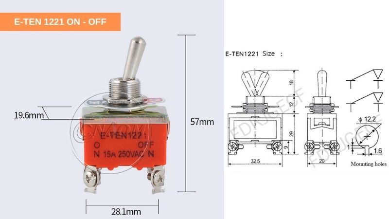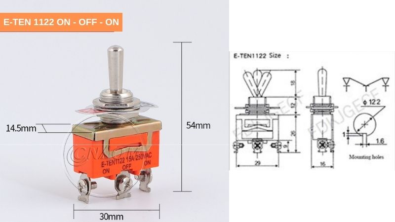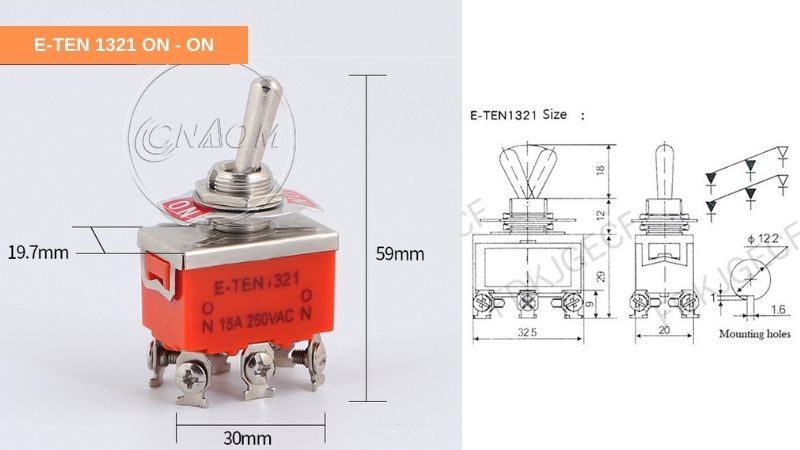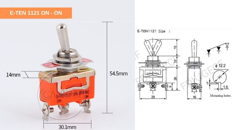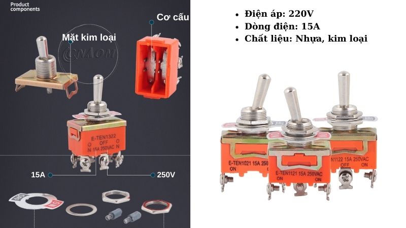 Thông số kỹ thuật công tắc gạt E-TEN 220V 15A: