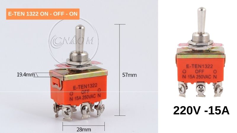 Dưới đây là một số chi tiết về công tắc gạt E-Ten 220v 15A: