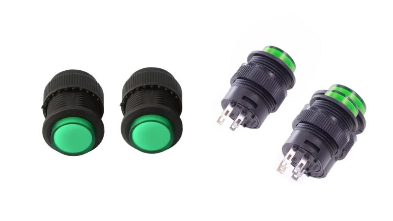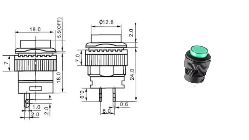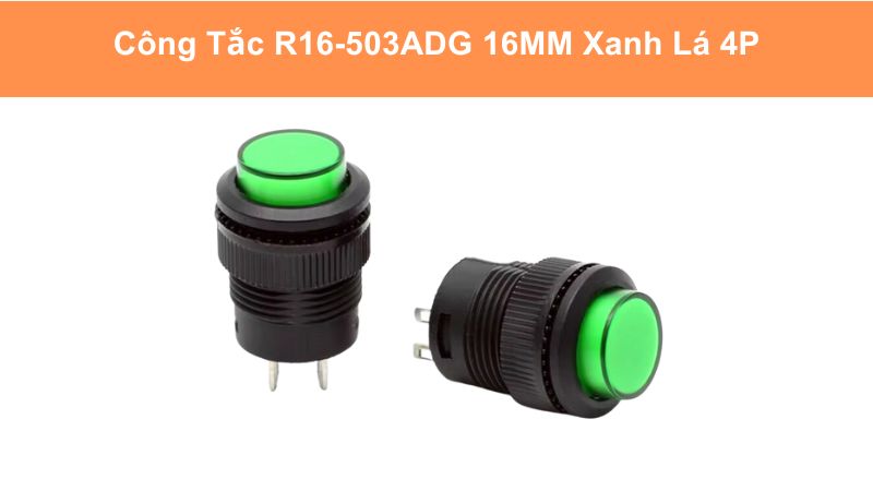 Công tắc R16-503ADG là một loại linh kiện điện tử được sử dụng rộng rãi trong các mạch điều khiển. Nó có kích thước 16mm, màu xanh lá và có 4 chân kết nối.