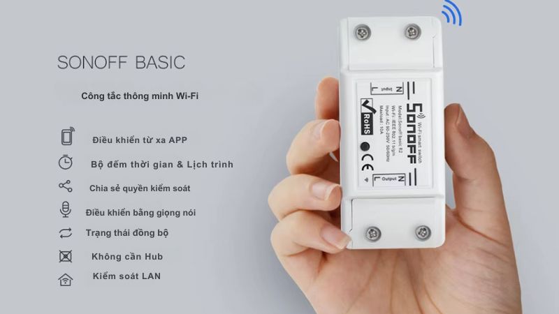 Công tắc Wifi Sonoff Basic EWeLink CE-1A là một thiết bị nhỏ gọn, thông minh cho phép bạn điều khiển các thiết bị điện trong nhà một cách dễ dàng thông qua ứng dụng điện thoại. Với thiết bị này, bạn có thể bật/tắt các thiết bị từ xa, hẹn giờ, theo dõi trạng thái và tạo các kịch bản tự động hóa.