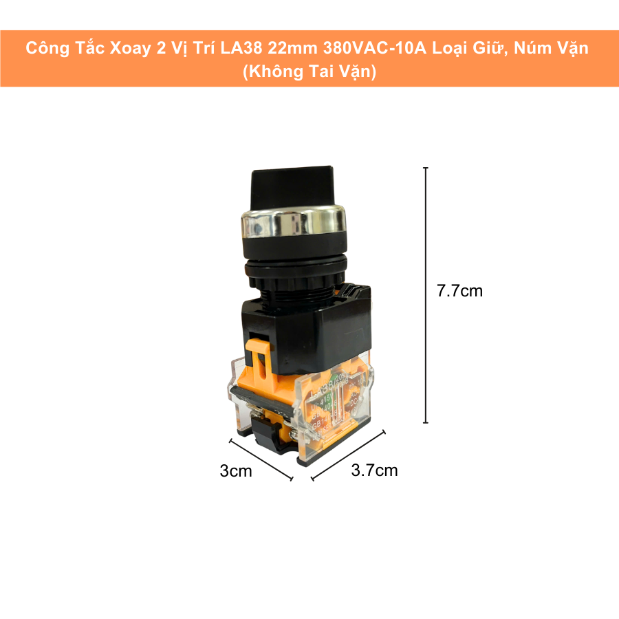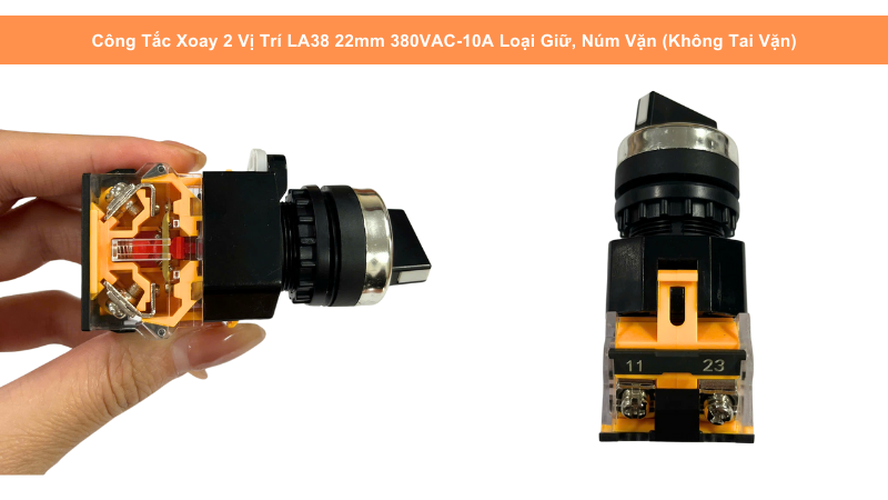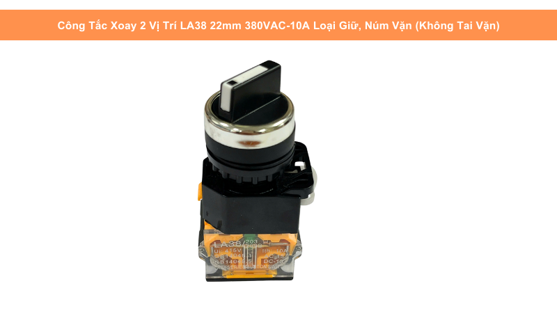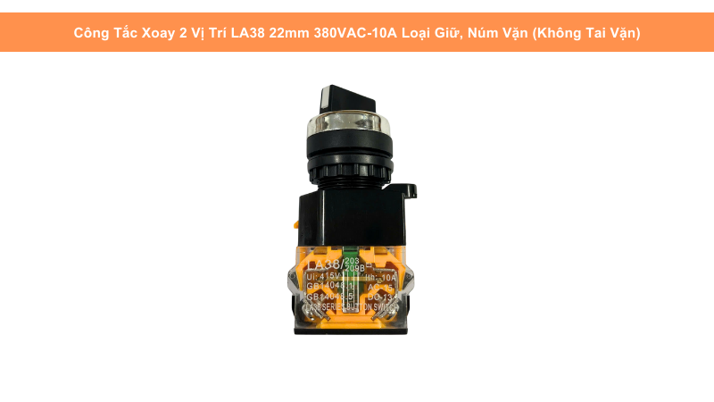 Sản phẩm thuộc series LA38, nổi tiếng với độ bền, độ ổn định cao và khả năng chịu tải tốt. Thiết kế loại giữ (maintained) giúp công tắc giữ nguyên trạng thái ON/OFF sau khi xoay – phù hợp cho các chức năng chuyển chế độ, lựa chọn hướng hoạt động, bật/tắt nguồn của thiết bị.