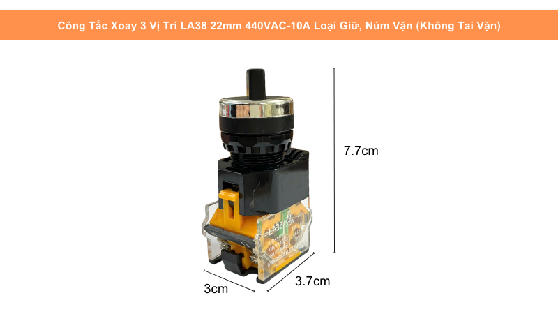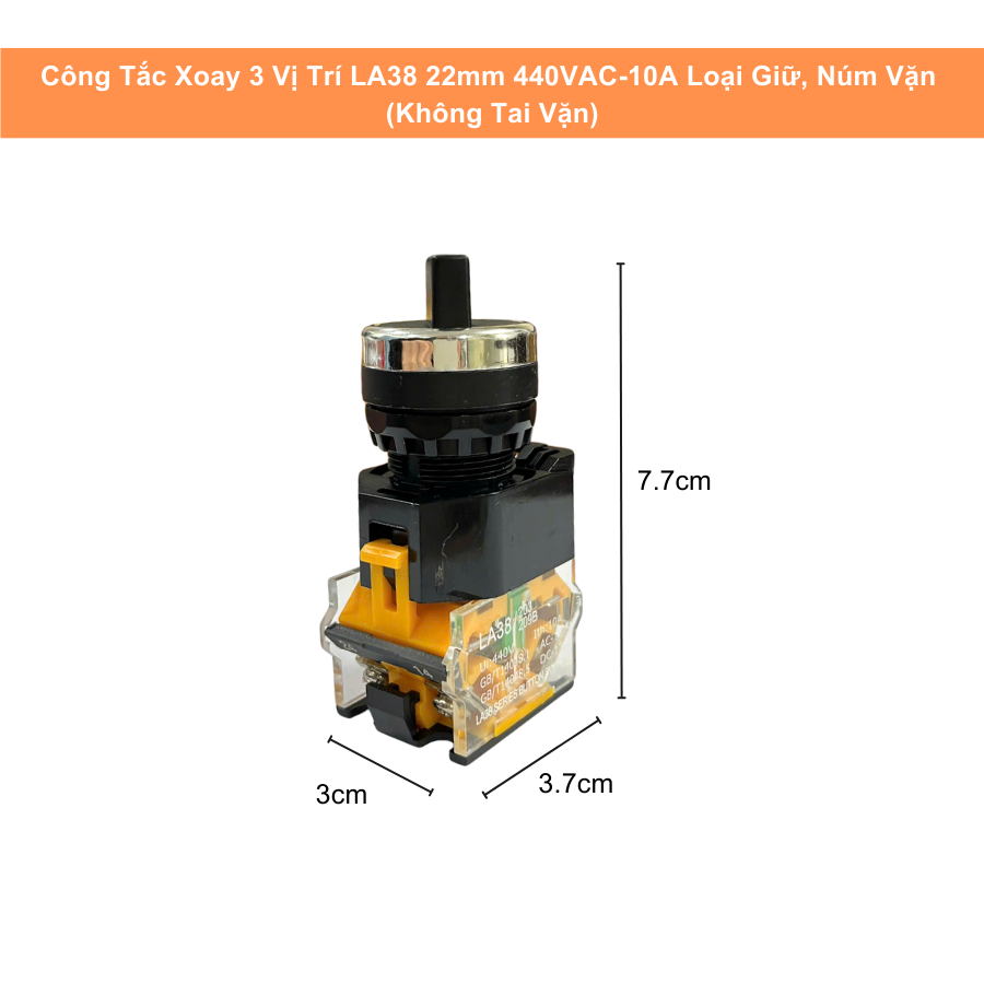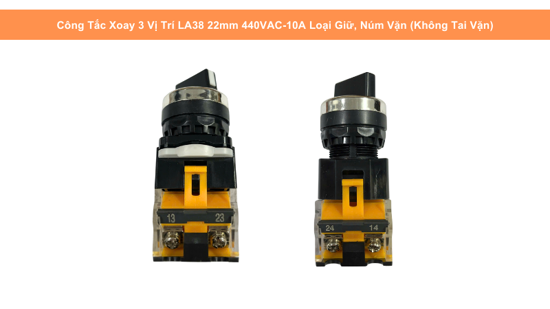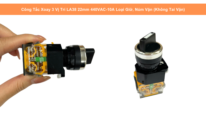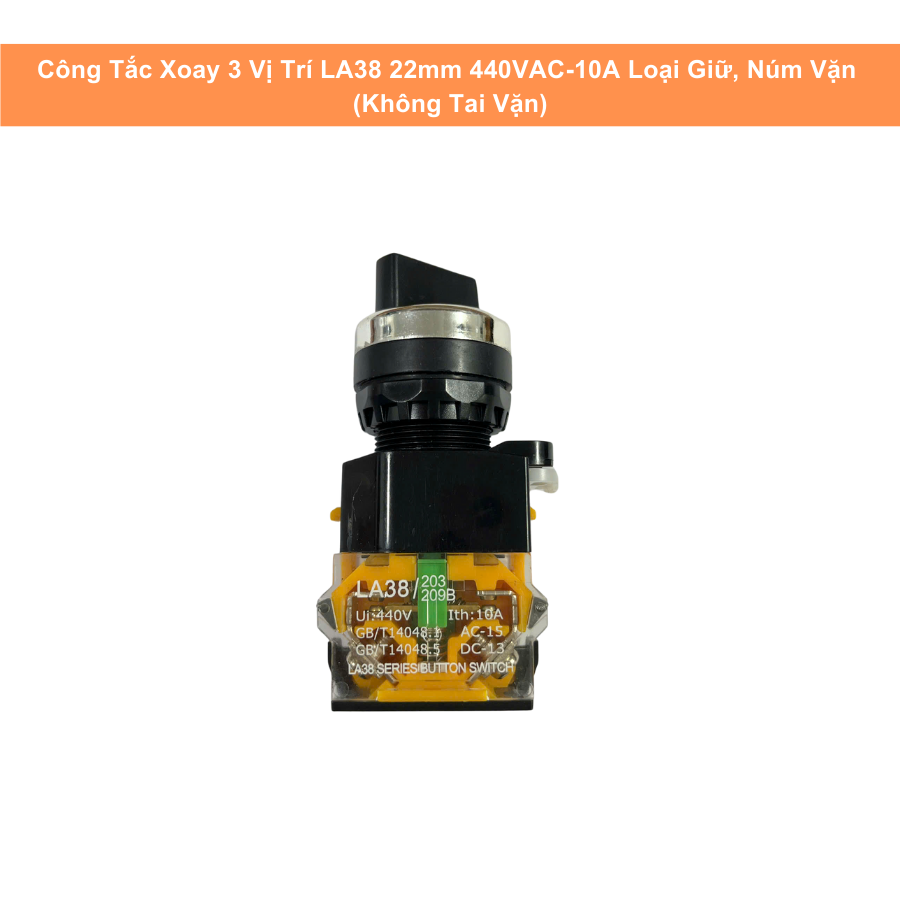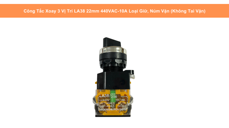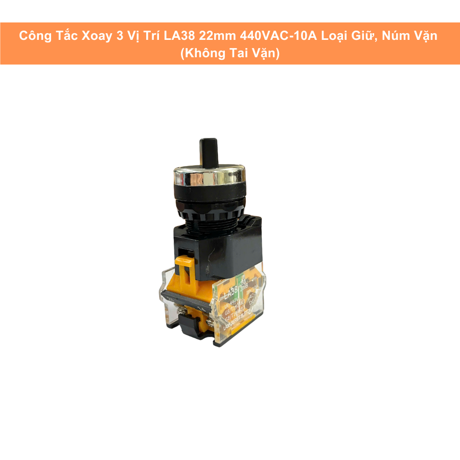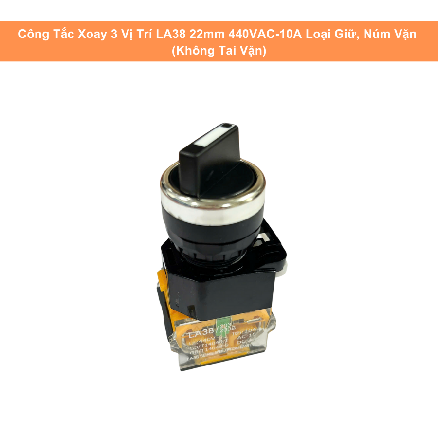 Phiên bản Công Tắc Xoay 3 Vị Trí LA38 – Loại Giữ – Núm Vặn (Không Tai Vặn) là lựa chọn tối ưu nhờ thiết kế chắc chắn, thao tác xoay mượt, độ bền cao và khả năng chịu tải lên đến 440VAC – 10A.