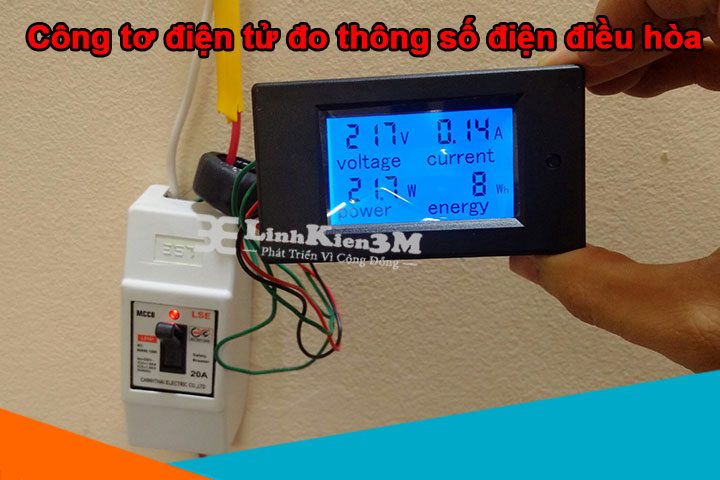 Hình ảnh thực tế sử dụng công tơ để đo công suất tiêu thụ, điện áp