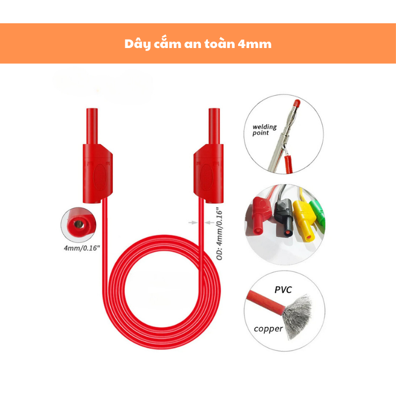 Dây cắm chân đế an toàn 4mm là loại dây dẫn điện được sử dụng phổ biến trong các phòng thí nghiệm, trường học, xưởng sản xuất và các ngành công nghiệp khác. Dây được thiết kế với hai đầu cắm.