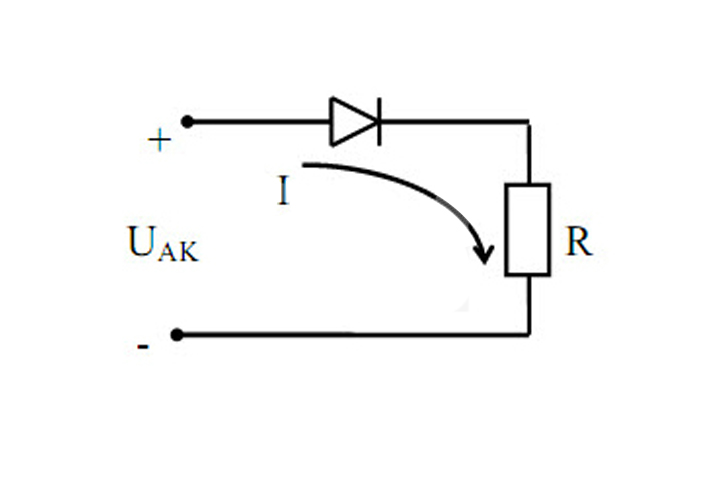 Khi đưa điện áp ngoài có cực dương vào Anode, âm vào catốt (UAK > 0) thì Diode sẽ dẫn điện và trong mạch có dòng điện chạy qua vì lúc này tiếp xúc P-N được phân cực thuận
