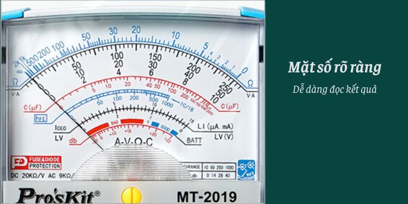 Đồng hồ vạn năng Proskit MT-2019 là thiết bị đo lường điện cầm tay đa chức năng, được sử dụng để đo điện áp, dòng điện, điện trở, tụ điện, hFE, diode, v.v.