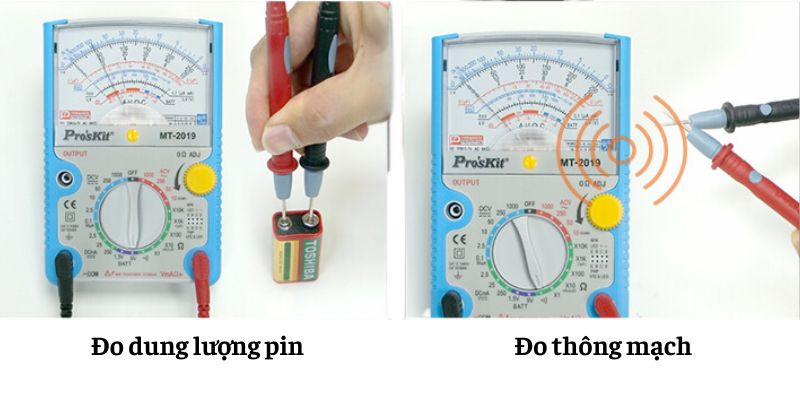 • Chức năng đo đa dạng: Đo điện áp AC/DC, dòng điện AC/DC, điện trở, dung lượng tụ điện, tần số, thông mạch, diode và transistor.