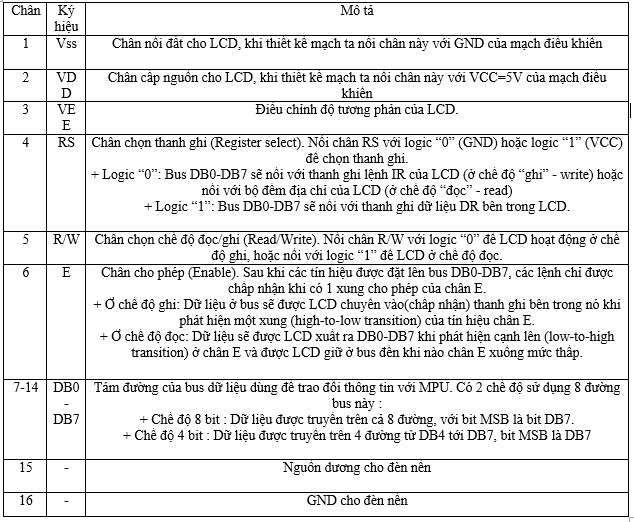 Ngày nay, thiết bị hiển thị LCD (Liquid Crystal Display) được sử dụng trong rất nhiều các ứng dụng của VĐK. LCD có rất nhiều ưu điểm so với các dạng hiển thị khác: Nó có khả năng hiển thị kí tự đa dạng, trực quan (chữ, số và kí tự đồ họa), dễ dàng đưa vào mạch ứng dụng theo nhiều giao thức giao tiếp khác nhau, tốn rất ít tài nguyên hệ thống và giá thành rẽ …