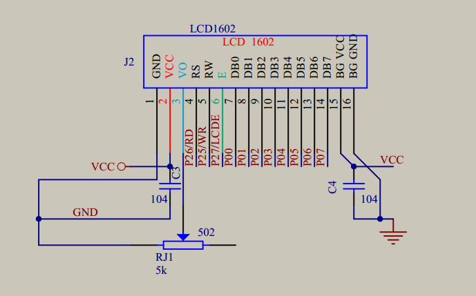 Sơ đồ kết nối chân của LCD trong Kit 8051 Pro: