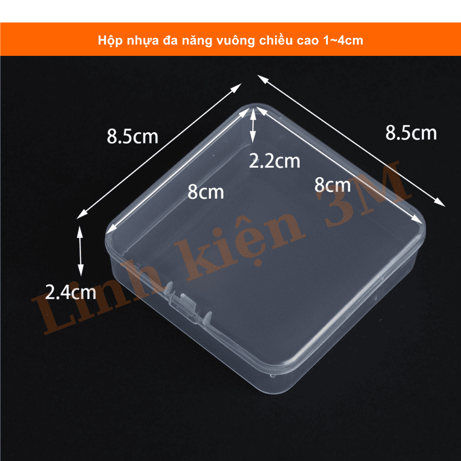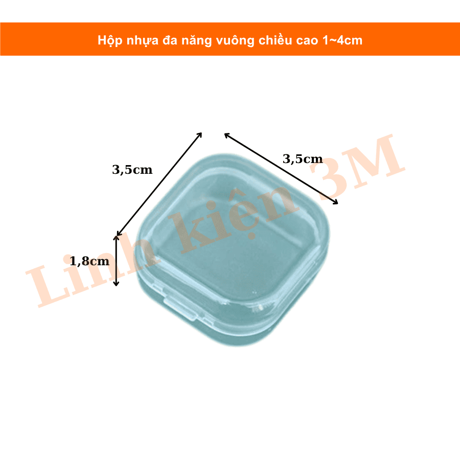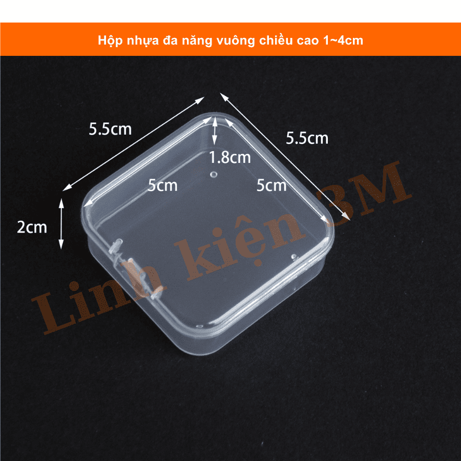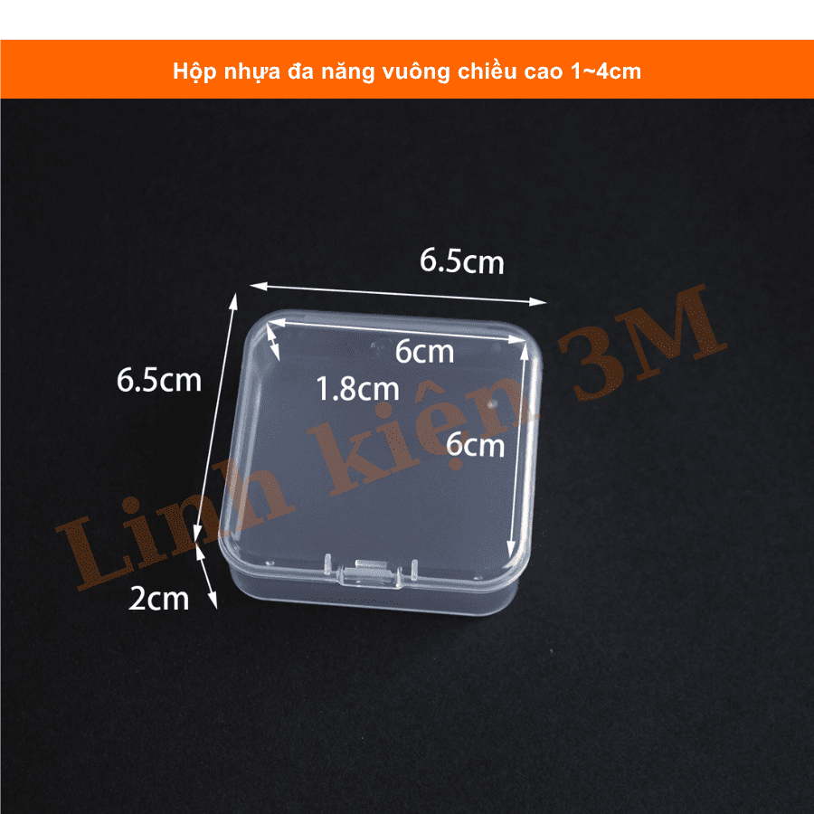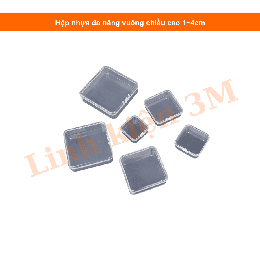 Hộp nhựa đa năng vuông chiều cao 1~4cm là lựa chọn tiện lợi để bảo quản linh kiện điện tử, ốc vít, module, cảm biến, đầu nối, tụ, điện trở... hoặc các vật dụng nhỏ trong phòng thí nghiệm, bàn làm việc, mô hình STEM. Với thiết kế vuông vắn, chắc chắn, nhiều kích thước lựa chọn, sản phẩm giúp bạn sắp xếp gọn gàng, khoa học và chuyên nghiệp hơn.