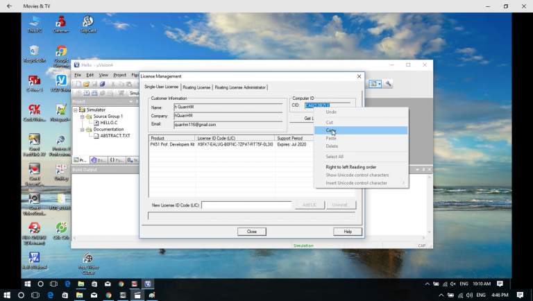 Mở keygen=>copy vào CID trong keygen=>bấm generate để lấy key=>copy key vào mục new license…=>add LIC