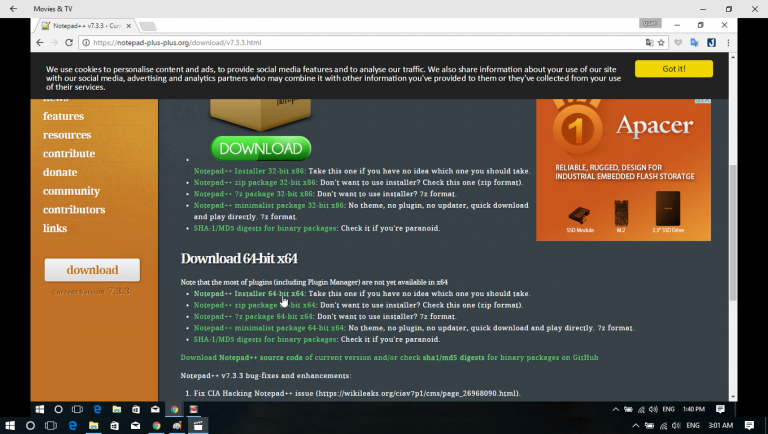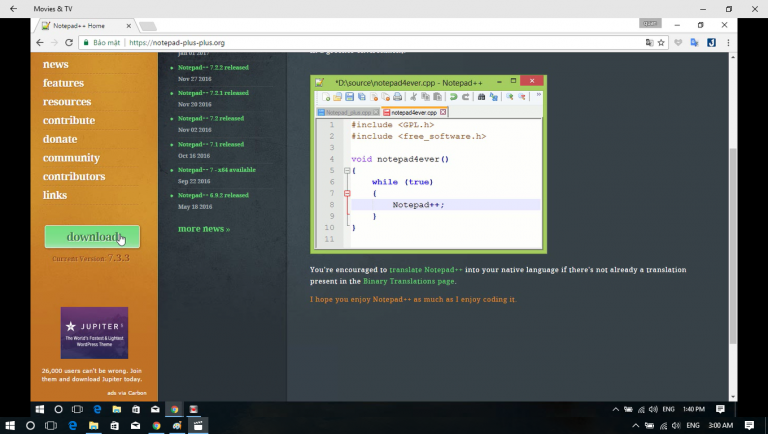 Các bạn truy cập vào trang notepad++ như hình bên dưới để tải
