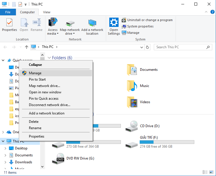 Chuột phải vào My Computer chọn Manage -> Device Manager