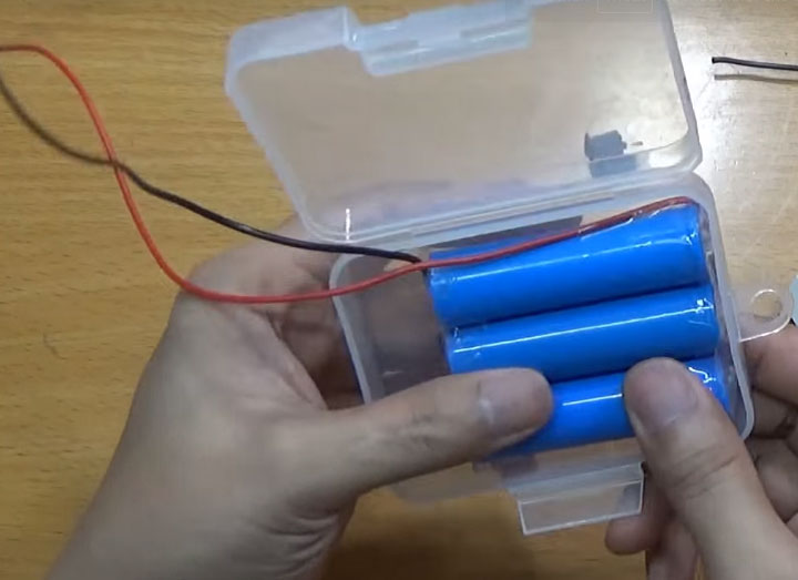 Bước 3: Gắn pin vào hộp nhựa đã chuẩn bị sẵn