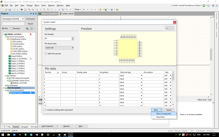 Hiện tại có nhiều cách để tạo được một thư viện nguyên lý trên Altium Designer. Dưới đây mình xin chia sẻ một cách để thư viện mới trong Altium Designer cực nhanh. Việc soạn sẵn danh sánh các chân trong excel và copy trực tiếp vào Altium Designer để có build những symbol có số chân lớn.