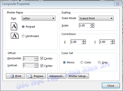 - Tiếp theo sẽ là mục Scale Mode: Chọn Scaled Print và bên dưới sửa tỉ lệ là 1.00 (Nếu tỉ lệ là 1.00 thì không cần sửa)