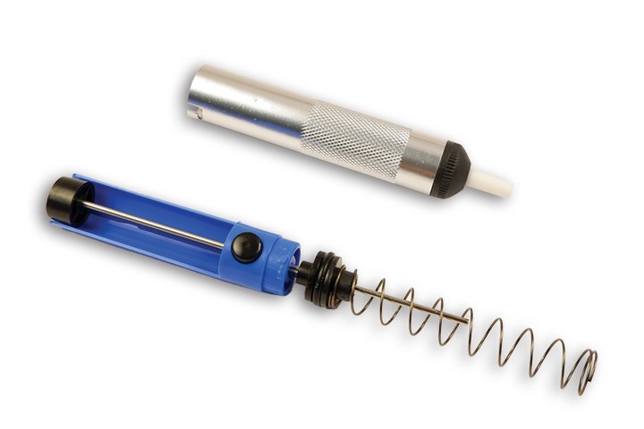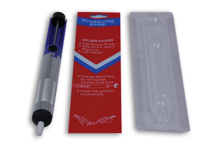 Súng hút thiếc là một trong những phụ kiện hàn rất quen thuộc và cần thiết đối với những bạn thường xuyên phải hàn mạch, chế cháo... được dùng để hút thiếc thừa, tháo chân linh kiện. Súng hút thiếc được thiết kế rất nhỏ gọn tiện lợi và dễ dàng sử dụng. súng hút thiếc được thiết kế dạng hình trụ chắc chắn bền bỉ.