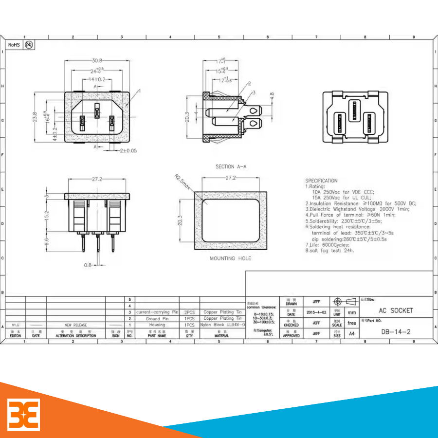 Jack cắm âm 3 chân 220VAC-10A là một linh kiện điện thông dụng, được sử dụng để kết nối nguồn điện AC cho các thiết bị điện tử, công nghiệp và dân dụng. Với khả năng chịu điện áp lên tới 250V và dòng tải tối đa 10A, sản phẩm này mang đến độ an toàn, ổn định và tiện lợi cao trong quá trình sử dụng.