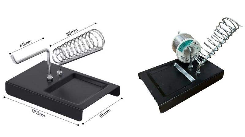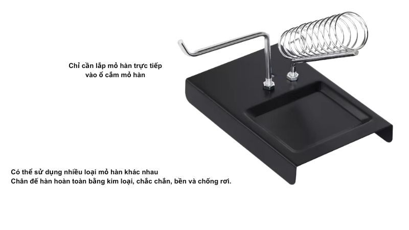 Kệ hàn là một dụng cụ nhỏ gọn, được làm bằng kim loại sơn tĩnh điện. Sản phẩm bao gồm một giá đỡ lò xo để giữ chắc chắn mỏ hàn, một giá treo thiếc tiện lợi. Đây là một công cụ hữu ích cho những người yêu thích DIY và sửa chữa điện tử.