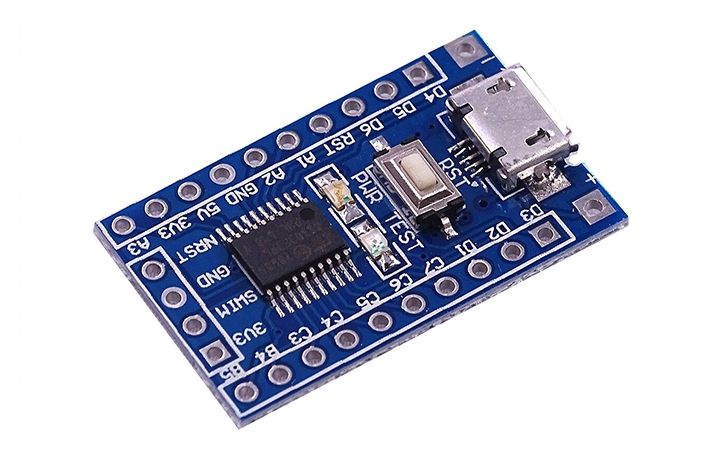 Kit phát triển STM8S103F3P6 được phát triển dựa trên dòng Vi điều khiển STM8 của hãng ST sử dụng IC chính STM8S103F3P6 . với giá thành siêu rẻ và khả năng tiết kiệm năng lượng vượt trội, thích hợp để nghiên cứu và ứng dụng trong các hệ thống nhỏ, dùng pin và tối ưu chi phí. Thích hợp làm những ứng dụng đơn giản