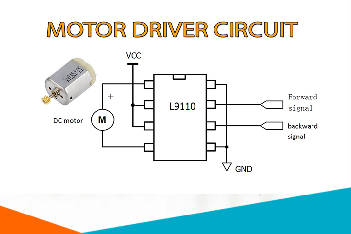 IC L9110 dùng để điều khiển động cơ truyền động với thiết kế bộ khuếch đại công suất kéo-đẩy(push-pull) hai kênh, Con chip này có hai tương thích TTL / CMOS với mức đầu vào, hai đầu ra có thể trực tiếp chuyển động thuận và chuyển động ngược của động cơ, nó có một khả năng cung cấp dòng điện một chiều cho mỗi kênh từ 750 ~ 800mA, dòng điện cực đại lên tới 1,5A.