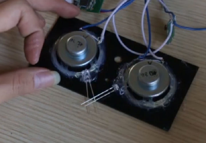 Bước 5: Lắp 2 loa vào khung mica và gắn thêm 2 Led trang trí cho mạch