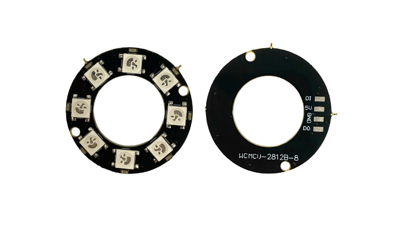 Mạch hiển thị NeoPixel RGB WS2812 được tích hợp các đèn LED RGB WS2812 (SMD 5050) với khả năng điều khiển từng LED độc lập thông qua chuẩn giao tiếp nối tiếp 1-Wire, cho phép điều khiển toàn bộ mạch chỉ với một chân dữ liệu duy nhất từ vi điều khiển.