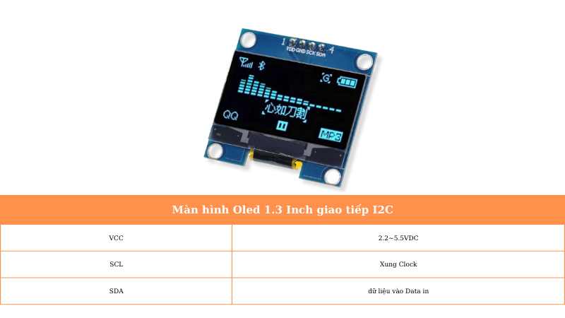 Màn hình Oled 1.3 Inch giao tiếp I2C - Hiển thị sắc nét, tiết kiệm năng lượng
