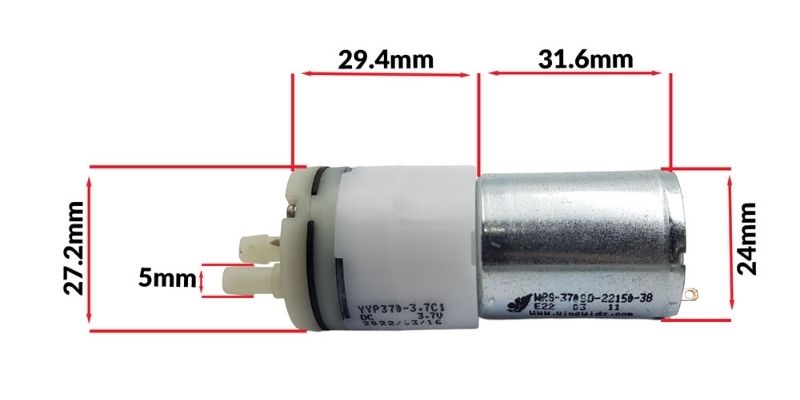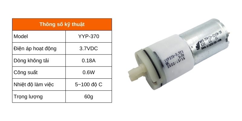 Máy bơm mini YYP370-3.7V là thiết bị bơm nước nhỏ gọn, tiện lợi và giá rẻ, sử dụng điện áp 3.7V, thường được sử dụng trong các ứng dụng DIY, mô hình, chế tạo robot, v.v.