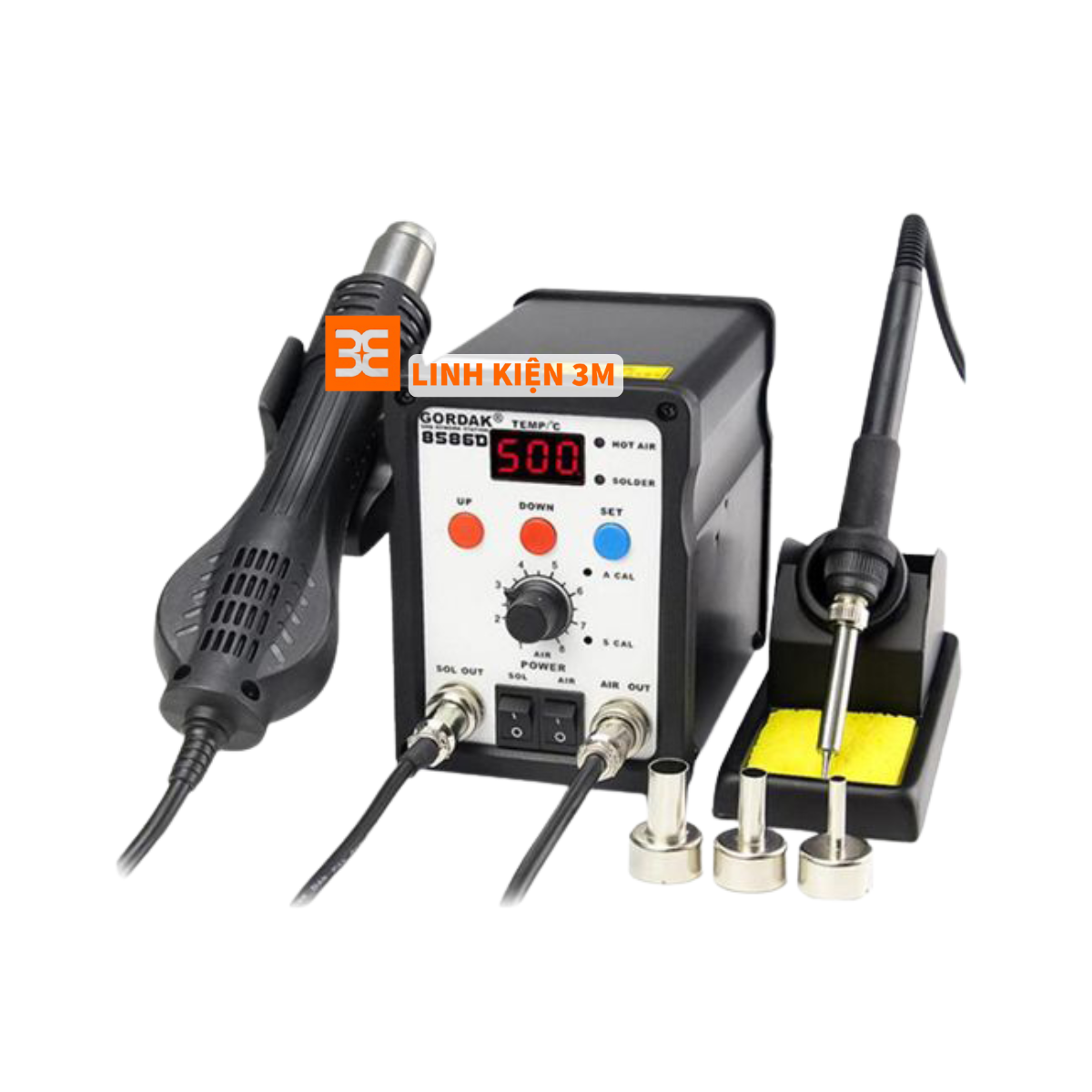 - Máy khò và hàn thiếc Gordak 8586D có các đầu khò có kích thước khác nhau (tùy thuộc vào yêu cầu của khách hàng).