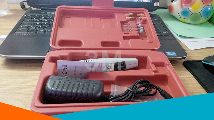 - Trong máy có sẵn 5 loại mũi khoan: 0.5mm, 1.0mm, 1.5mm, 2.5mm, 3.0mm. 4 đầu mài và 1 lưỡi cắt.