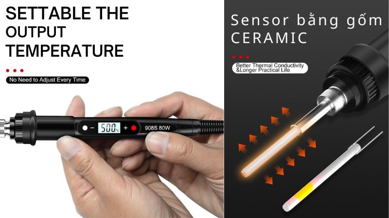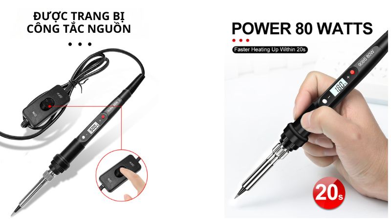 - Hiệu suất mạnh mẽ: Công suất 80W đảm bảo quá trình gia nhiệt nhanh chóng và ổn định, giúp bạn hoàn thành công việc hàn một cách hiệu quả.