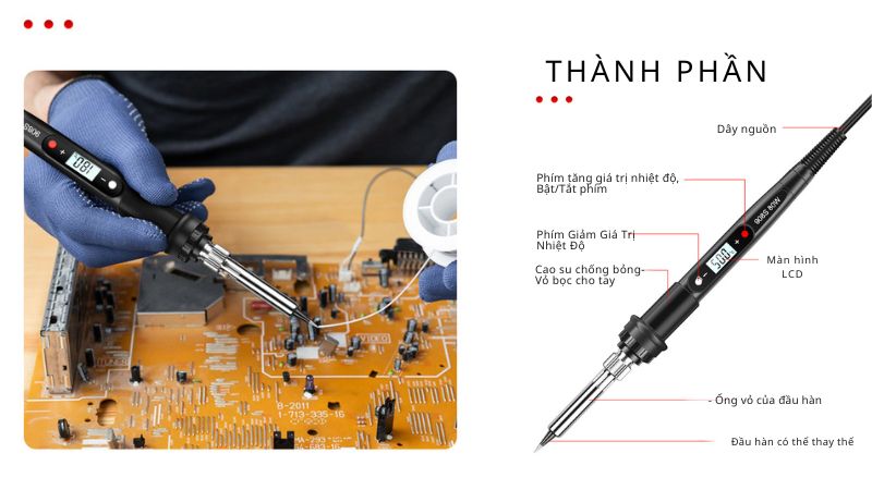 - Điều chỉnh nhiệt độ: Sử dụng các nút điều chỉnh để chọn nhiệt độ hàn phù hợp với loại thiếc và vật liệu hàn.