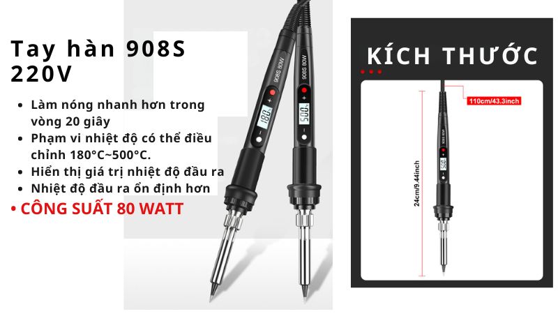 Mỏ hàn thiếc 908S 220v 80w là sự lựa chọn lý tưởng cho những ai đang tìm kiếm một công cụ hàn đáng tin cậy, linh hoạt và hiệu quả. Hãy trải nghiệm và cảm nhận sự khác biệt!