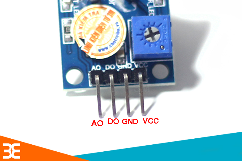 Ngoài ra, module được tích hợp bộ so sánh lm393 để đưa ra điện áp mức 0 hoặc mức 1. Biến trở điều chỉnh độ nhạy của cảm biến, khi tín hiệu từ chân A0 vượt quá giá trị mà ta cài đặt ở biến trở. Module sẽ đưa ra mức 1 ở chân DO.