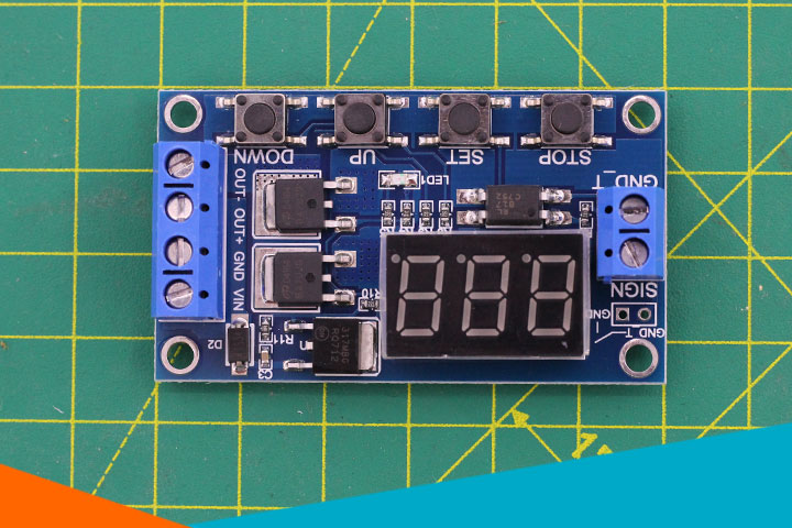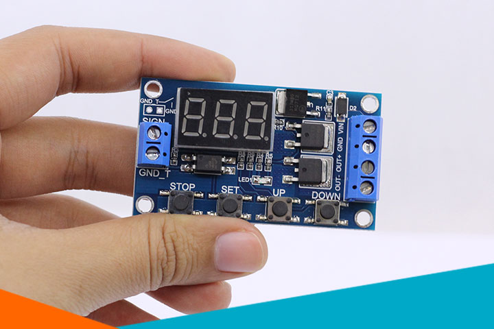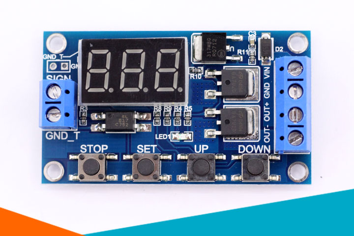 Module tạo trễ sử dụng mosfet 15A 400W có thể tạo trễ từ 0 đến 999s sử dụng mosfet để đóng cắt. Module cải thiện khả năng chống nhiễu, khống tia lửa, nhiễm điện từ trong quá trình on/off.