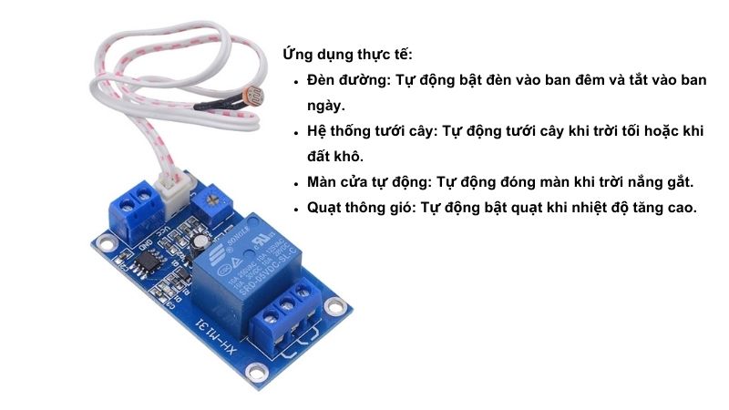 Với module này, bạn có thể tạo ra những ứng dụng thông minh như đèn đường tự động bật khi trời tối, hệ thống tưới cây tự động tắt khi trời nắng, và nhiều hơn nữa.