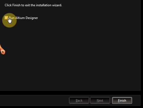 Bỏ tích ở Run Altium Designer sau đó nhấn Finish: