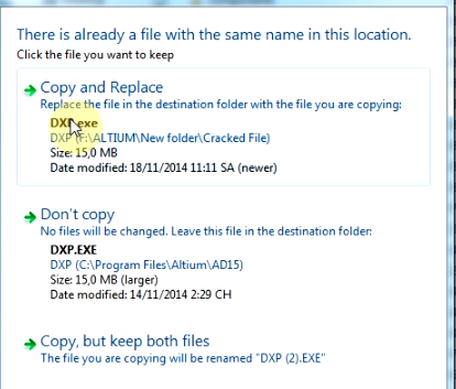 Copy file DXP.exe trong thư mục Atium_Crack\Cracked File và Paste vào thư mục cài đặt của Altium, mặc định là: C:\Program Files(x86)\Altium\AD15
