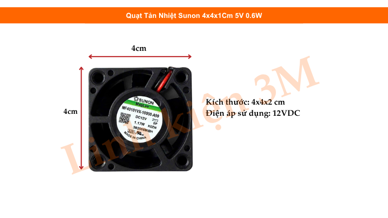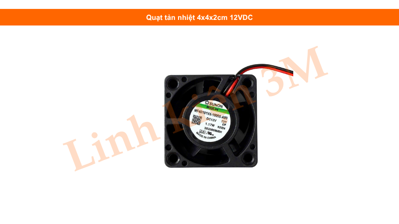Quạt tản nhiệt mini 12VDC kích thước 4x4x2cm – công suất mạnh, độ bền cao, chuyên dùng làm mát bo mạch, module nguồn, camera, Pi, Arduino. Phù hợp các dự án DIY và thiết bị tản nhiệt liên tục.