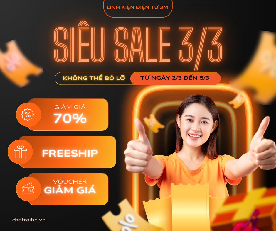 🎉 Chào mừng đại tiệc mua sắm lớn nhất tháng 3! Linh kiện điện tử 3M xin trân trọng thông báo chương trình khuyến mãi đặc biệt nhân dịp 3.3 với ưu đãi GIẢM GIÁ LÊN ĐẾN 70% cho tất cả sản phẩm!