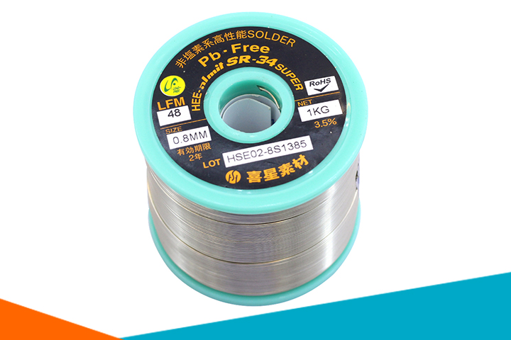 Thiếc Hàn Không Chì Hàn Quốc 3.5% Ag ALMIT SR-34 0.8mm PB-Free LFM-48 giúp cho việc hàn của bạn trở nên dễ dàng, và an toàn hơn rất nhiều. Thiếc không chứa chì bạn có thể yên tâm sử dụng mà không lo độc hại. Với nhiệt độ nóng chảy thấp ở mức 217-227 độ C và kích thước sợi thiếc nhỏ chỉ 0.8mm giúp cho việc hàn của bạn trở nên nhanh chóng và dễ dàng hơn rất nhiều đặc biệt với những mối hàn nhỏ cần sử tỉ mỉ. Thành phần 96,5% SN 3% Ag và 0,5% Cu cho mối hàn đẹp, sáng bóng và chống oxi hóa cao hơn rất nhiều so với các loại thiếc hàn thông thường. Loại thiếc hàn này thích hợp sử dụng cho các mạch cần sự tỉ mỉ và chính xác cao.