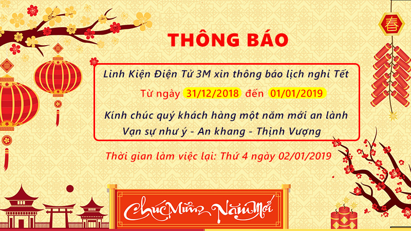 Nhân dịp năm mới Kỉ Hợi 2019, Linh Kiện Điện Tử 3M xin kính chúc Quý khách hàng một năm mới TÀI LỘC – AN KHANG – THỊNH VƯỢNG.
