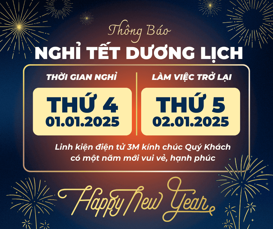 Linh kiện 3M xin trân trọng thông báo lịch nghỉ Tết Dương lịch 2025 như sau: