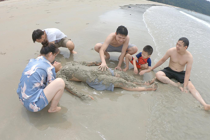 Các thành viên vui đùa trên bãi biển