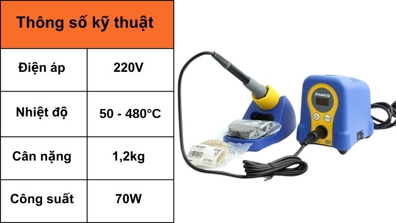 Trạm hàn Hakko FX-888D 220v 70w là một công cụ chuyên dụng để hàn các linh kiện điện tử. Với thiết kế nhỏ gọn, dễ sử dụng, đầu mũi hàn dễ dàng thay thế khi hỏng hóc hoặc muốn thay các loại mũi hàn khác và độ chính xác cao, sản phẩm này được sử dụng rộng rãi trong các lĩnh vực điện tử, sửa chữa và chế tạo.