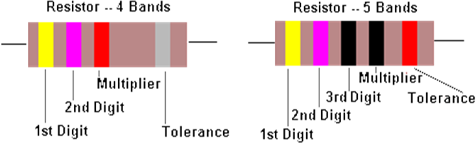 Cách đọc giá trị điện trở đối với điện trở 4 vạch màu: